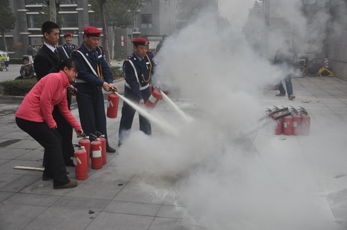 最后,,,,,演习职员又给员工和业主演示了消防水带的毗连和灭火器的使用要领。。。。。。现场员工和业主们起劲加入了此次实践,,,,,相识和掌握了准确使用灭火器材的要领,,,,,提高了处置惩罚初起火灾的能力。。。。。。