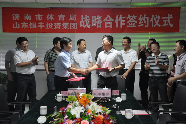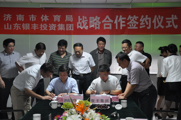 2012年9月27日 ,,,,,,STAKE中国官方网站集团与济南市体育局战略合作签约仪式在STAKE中国官方网站大厦举行。。。。。。。王伟董事长、刘旭副总裁及集团公司、各事业部向导与济南市体育局初伟局长一行在友好、热烈的气氛下就政企之间建设战略合作关系举行了探讨 ,,,,,,并乐成签署战略合作协议。。。。。。。