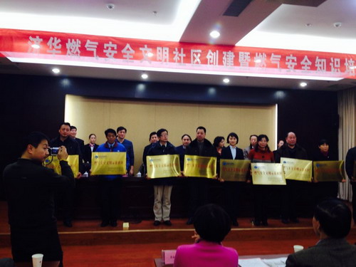 2014年1月15日上午,,,,,,,济南市文明办、市安监局、市政公用事业局、济华燃气团结召开“燃气清静文明社区”表扬大会。。。。。。