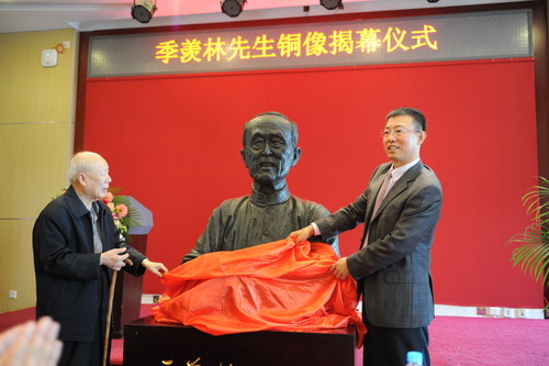 王伟董事长代表北大山东校友会向母校捐赠季羡林先生铜像