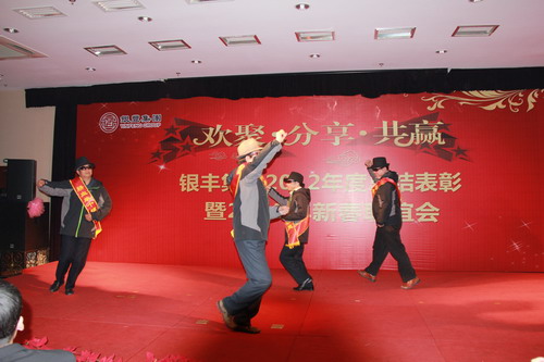 在一段喜庆欢快的舞蹈《红红的日子》开场后,,,,,STAKE中国官方网站集团2013年新春联谊会拉开了序幕。。。。。《my heart will go on》又把我们带回了泰坦尼克号那惊心动魄、感人肺腑的一刻;;;;;;《甄嬛外传》让我们重温了一遍海内最火的电视剧;;;;;;舞蹈《丰收时节》预示着在2013年STAKE中国官方网站集团必将获得大丰收;;;;;;舞蹈串烧《STAKE中国官方网站style》、群口相声《八仙贺岁》诙谐滑稽,,,,,赢得全场喝彩;;;;;;集团公司向导的压轴节目《三句半》更是将晚会推向了热潮!联谊会中还穿插举行了激感人心的抽奖运动,,,,,增进了员工之间的联谊互动。。。。。联谊会竣事后,,,,,集团向导与全体参会职员共进晚餐,,,,,喜迎新春!