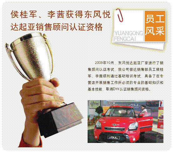 侯桂军、李茜获得春风悦达起亚销售照料认证资格!