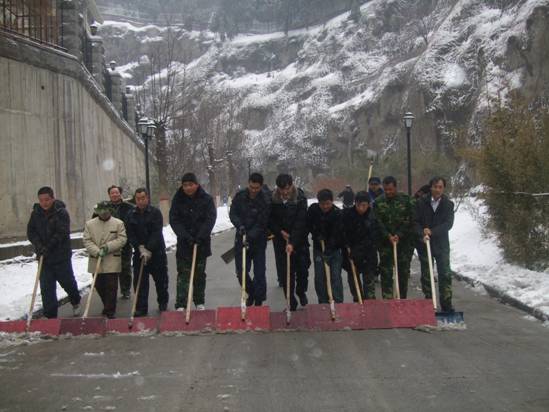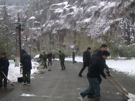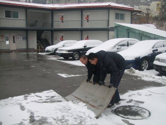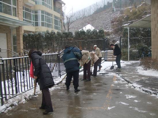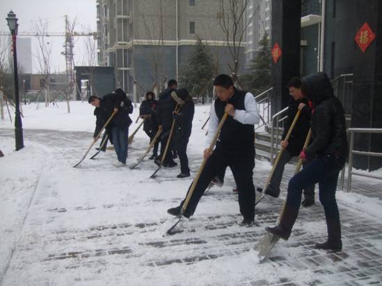 扫除庭院积雪,,,,,利便业主出行。。。。。。
